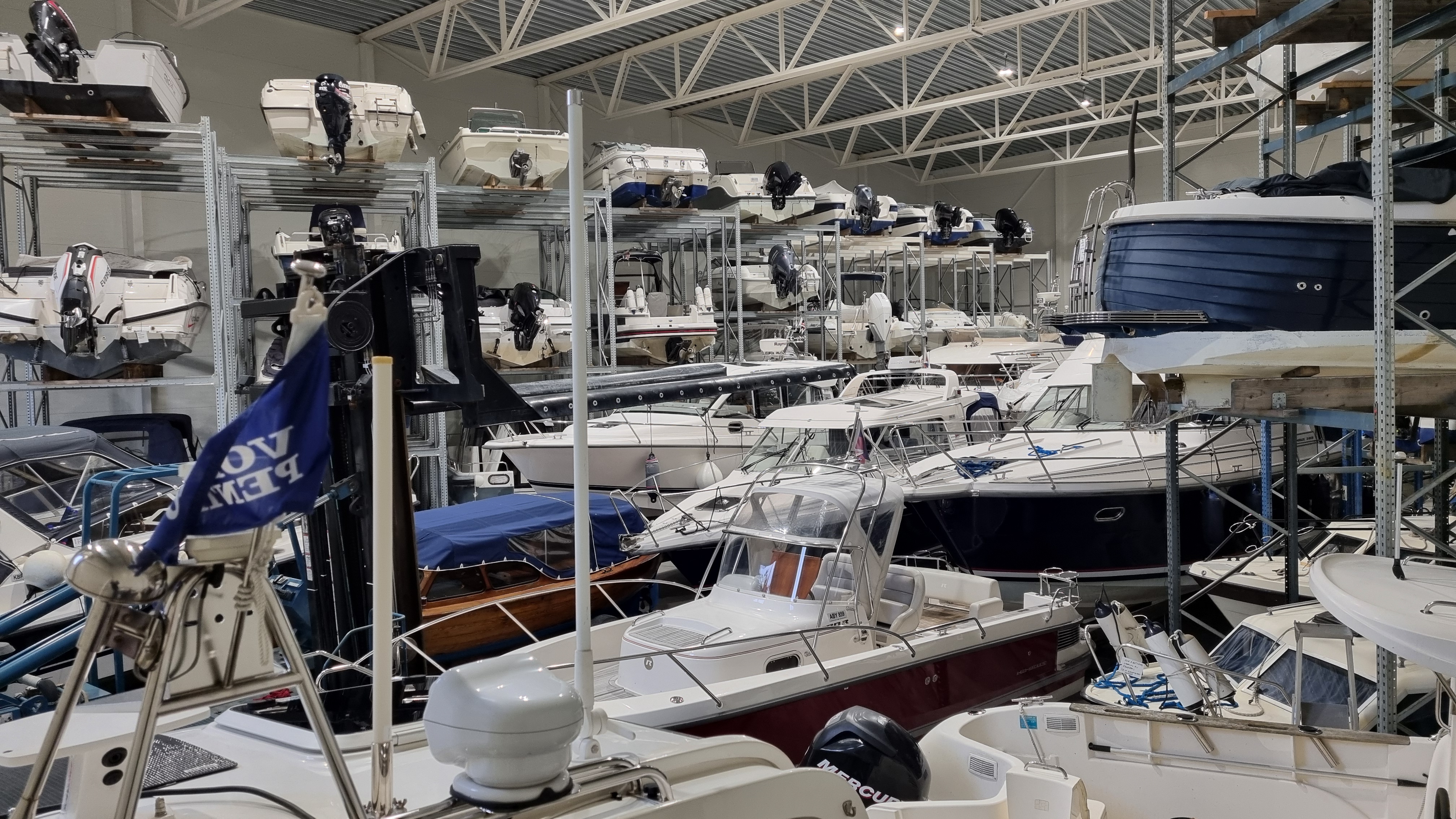 I vårt anlegg tilbyr vi innendørs lagring i frostfrie haller av båter opptil 50 fot.